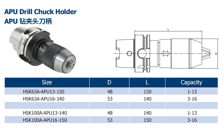 Eines der wesentlichen Merkmale des APU-WerkzeugsHalter ist die Leichtigkeit der Demontage und Wieder montage. Häufige Werkzeug wechsel sind während des Bearbeitungs prozesses üblich, und die einfache Demontage und Zusammenstellung der APU-Schäfte reduziert die für Werkzeug wechsel erforderliche Zeit erheblich und verbessert die Bearbeitungs effizienz. Der Bediener kann den Bohrer schnell laden und entladen, ohne dass komplizierte Werkzeuge oder mühsame Schritte erforderlich sind, was besonders in Massen produktions-oder Mehrprozess-Bearbeitungs szenarien wichtig ist.