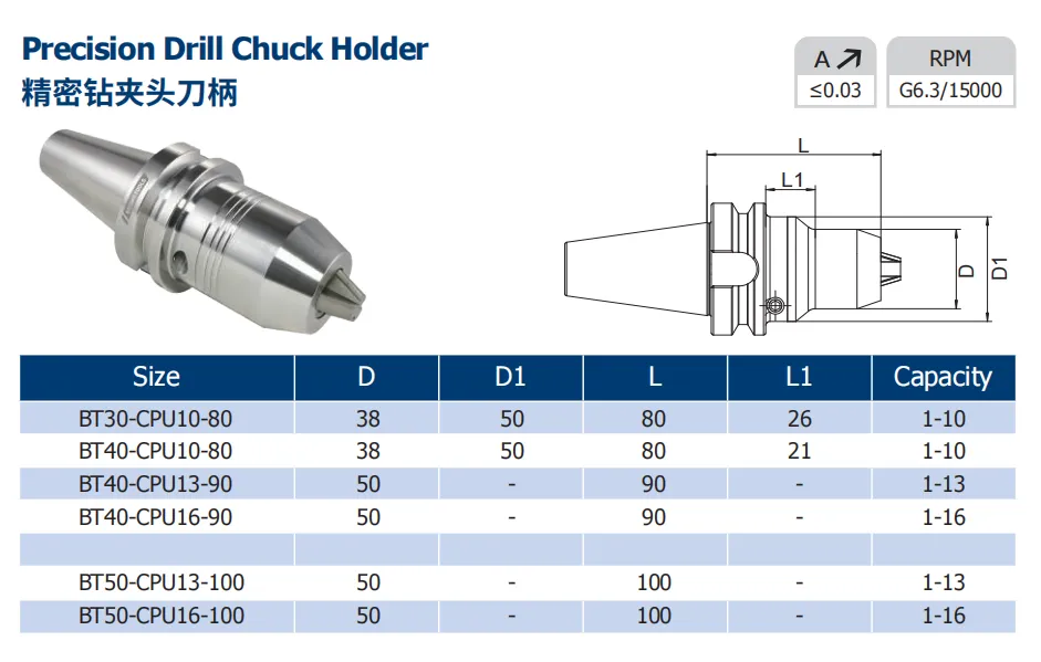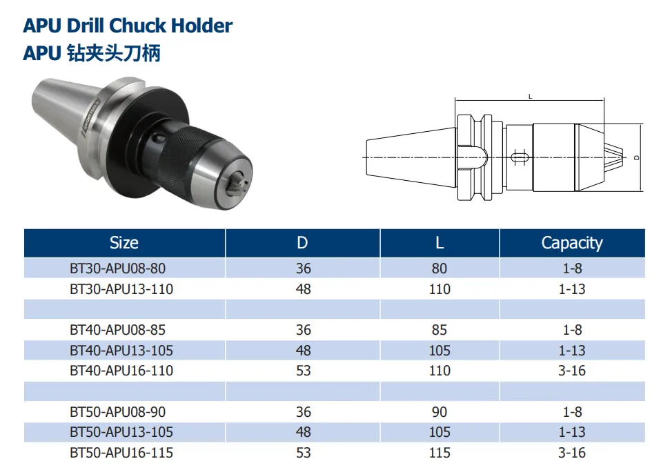 Bei der Auswahl eines Bohr futter werkzeug halters müssen Unternehmen ihre eigenen Verarbeitung sanford rungen, Budget beschränkungen und Anforderungen an Präzision und Stabilität sowie andere Faktoren berücksichtigen. Wenn es sich um eine allgemeine Bearbeitungs aufgabe handelt, die sich auf Kosten kontrolle und einfache Bedienung konzentriert, ist der APU-Werkzeug halter eine gute Wahl. für diejenigen, die hohe Präzision, hohe Stabilität verfolgen, und empfindlicher für Vibrationen im Prozess von High-End-Bearbeitungs projekten, ist der CPU-Werkzeug halter zweifellos eine idealere Lösung. Durch die vernünftige Wahl von APU-oder CPU-Werkzeug haltern können Unternehmen das beste Gleichgewicht zwischen Bearbeitungs qualität und Kosten effizienz im Bereich der CNC-Bearbeitung erzielen und ihre Wettbewerbs fähigkeit auf dem Markt verbessern.