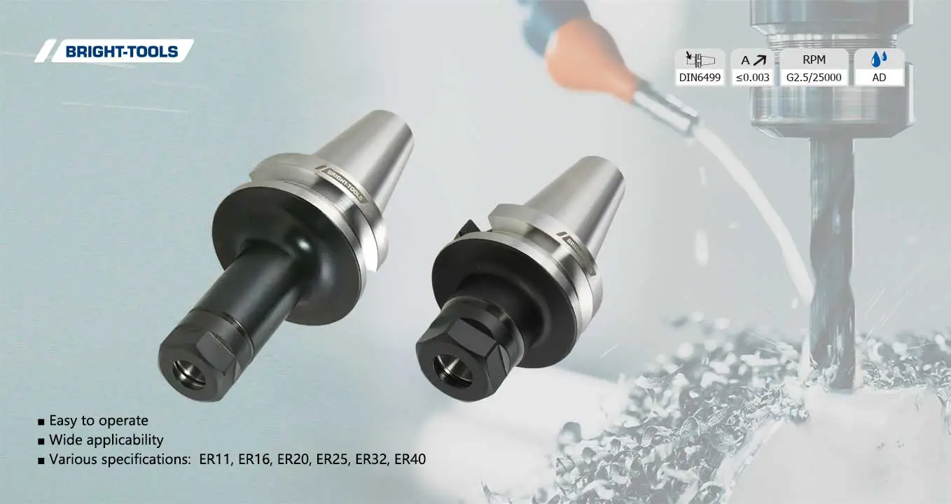 BBT-ER Werkzeug halter ist ein häufig verwendeter Werkzeug halter in der Werkzeug maschinen verarbeitung. Es besteht aus einem Werkzeug halter körper und einer ER-Collet. Es wird haupt sächlich zum Klemmen und Reparieren von Schneide werkzeugen mit geraden Schaften wie Bohrern und Fräsen von Fräsern verwendet.